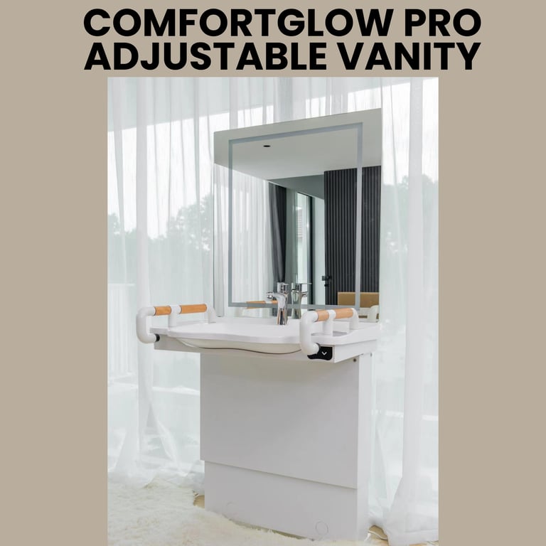 Elevate your bathroom with the GlowLift Adjustable LED Vanity, the perfect blend of modern design, convenience, and luxury. The height-adjustable adapts to your ideal comfort level, making it a must-have for families and individuals who value customization. Paired with sleek LED side lighting for optimal mirror illumination, the GlowLift ensures you always look your best. Its stylish, space-saving design fits effortlessly into any bathroom, bringing a sophisticated touch.